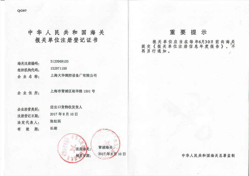 2017年8月 报关注册登记证书(开始涉及海外业务)